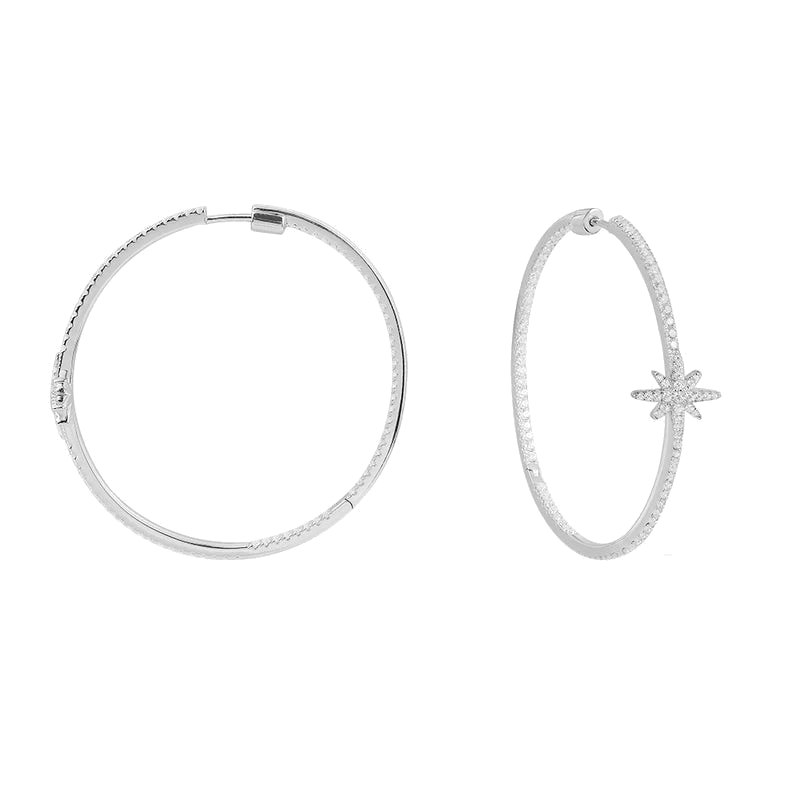 Ces boucles d’oreilles fabriquées à la main en argent 925 millièmes sont serties micro-pavé d’oxyde de zirconium.